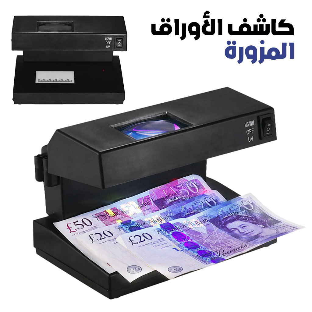 Détecteur de faux billets avec lumière UV bleue et blanche.كاشف تزوير محمول بالضوء المزدوج