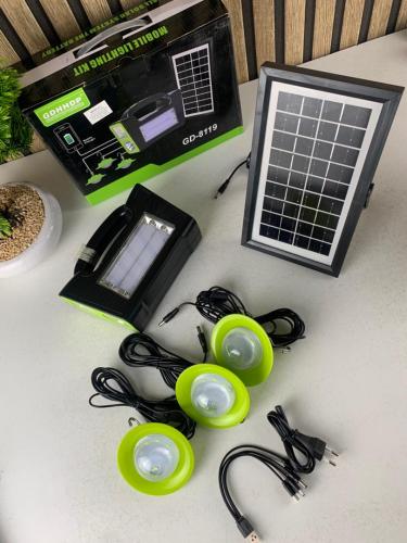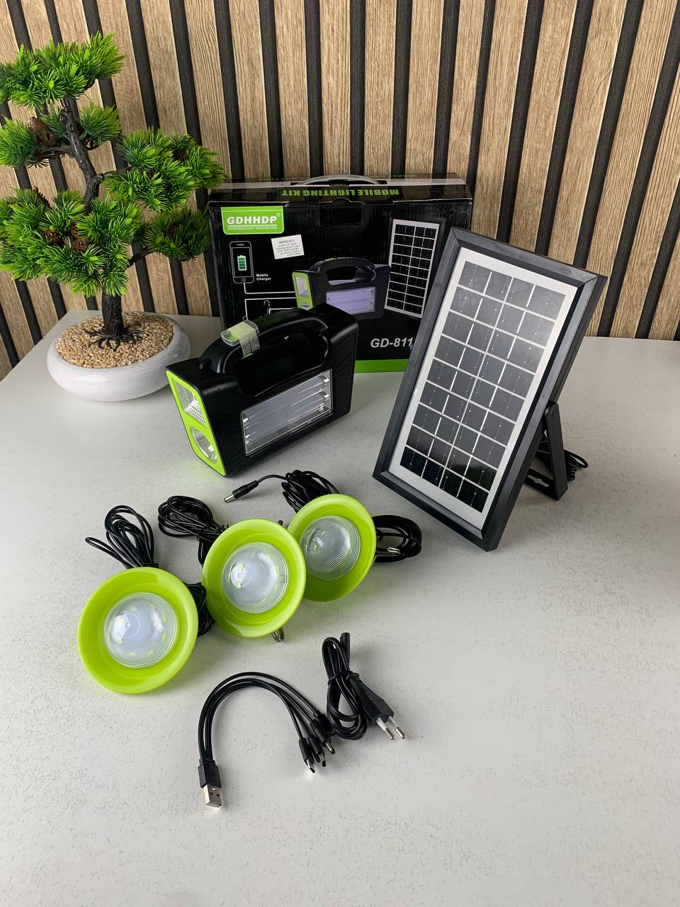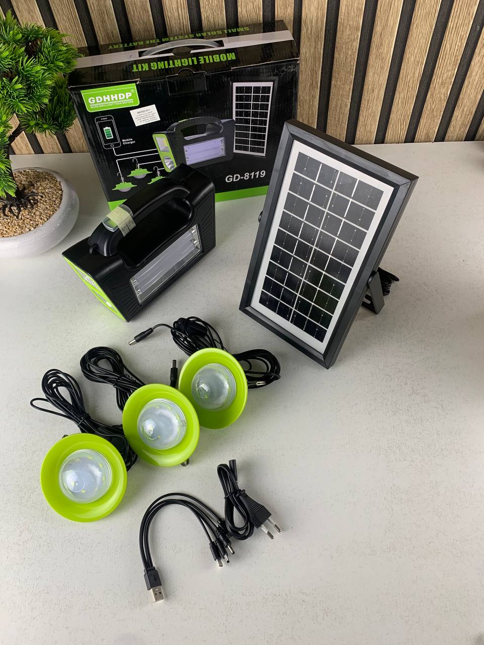 🔋 محطة طاقة شمسية محمولة مع 3 مصابيح LED + شحن USB